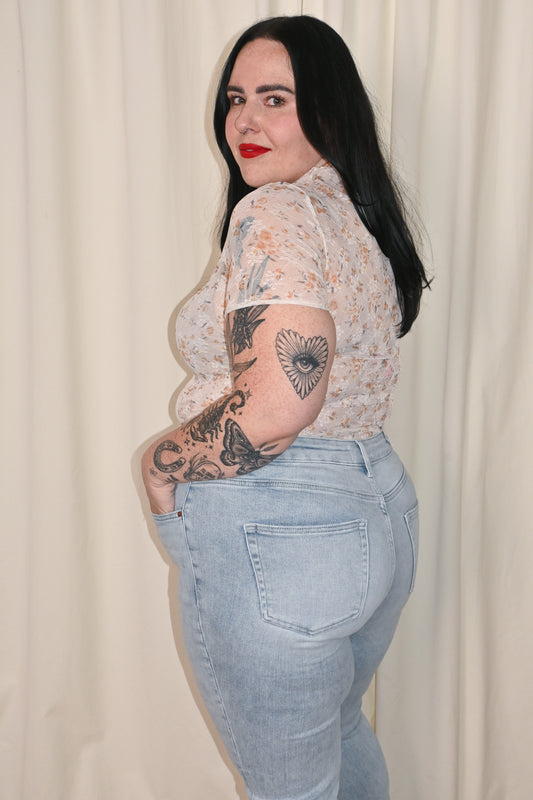 Sold outCURVE Mesh Floral Short Sleeve Top