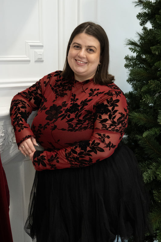Sheer Floral Velvet Top (S-3X)