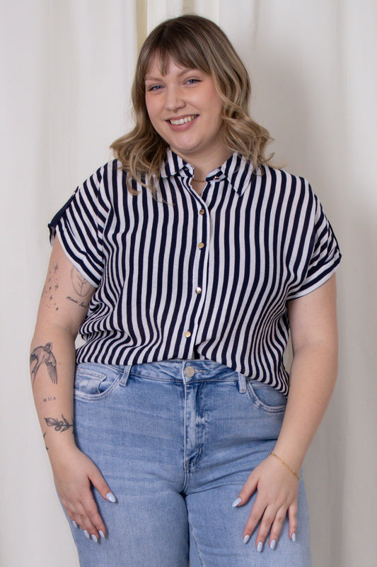 CURVE Stripe Short Sleeve Button Up