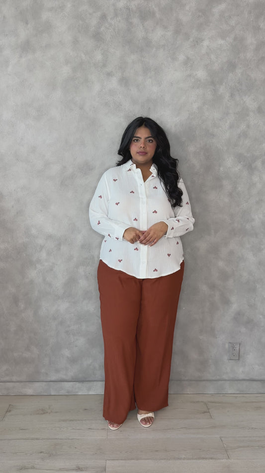 CURVE Embroidered Button Front