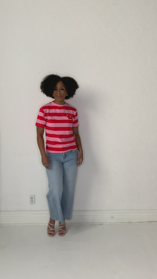 Striped Tee with Flower Applique