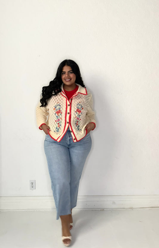 Embroidered Floral Cardigan (S-3X)