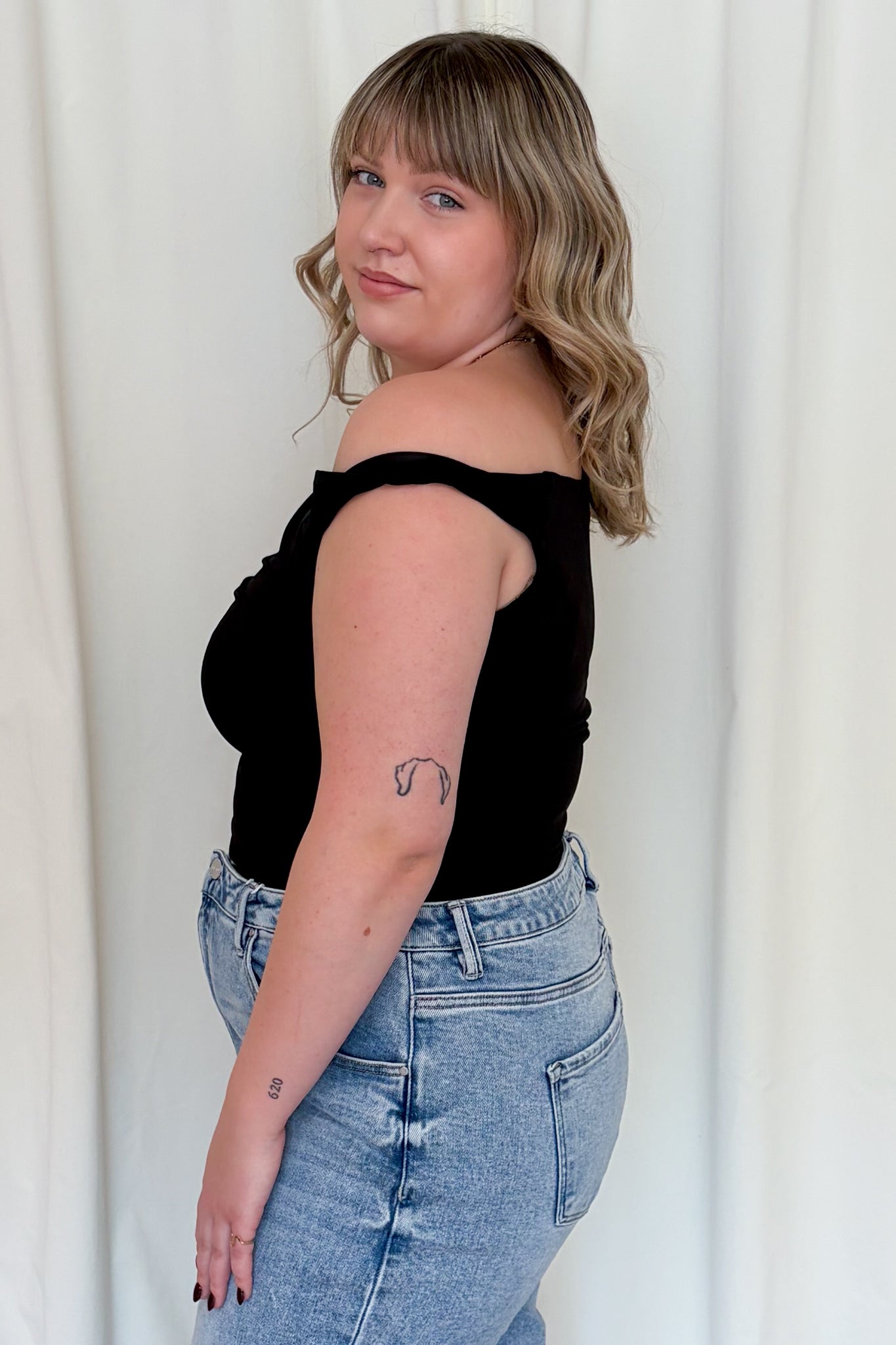 - Twist off the shoulder top