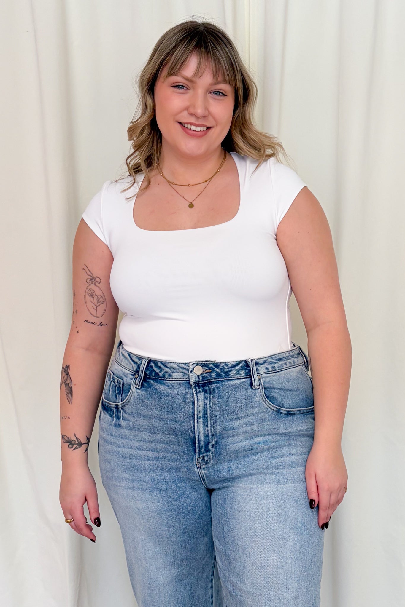 - Square neckline