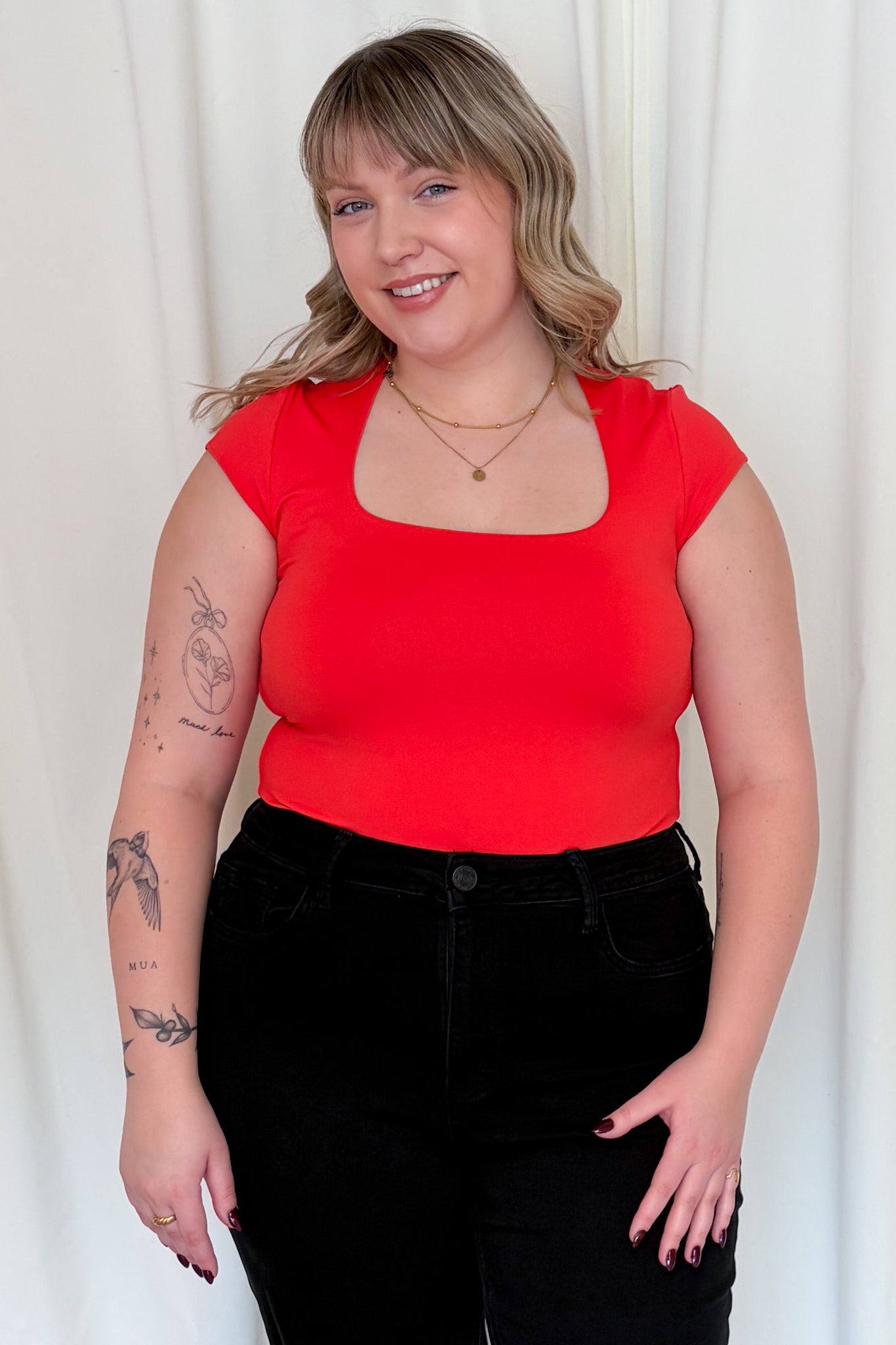 - Square neckline