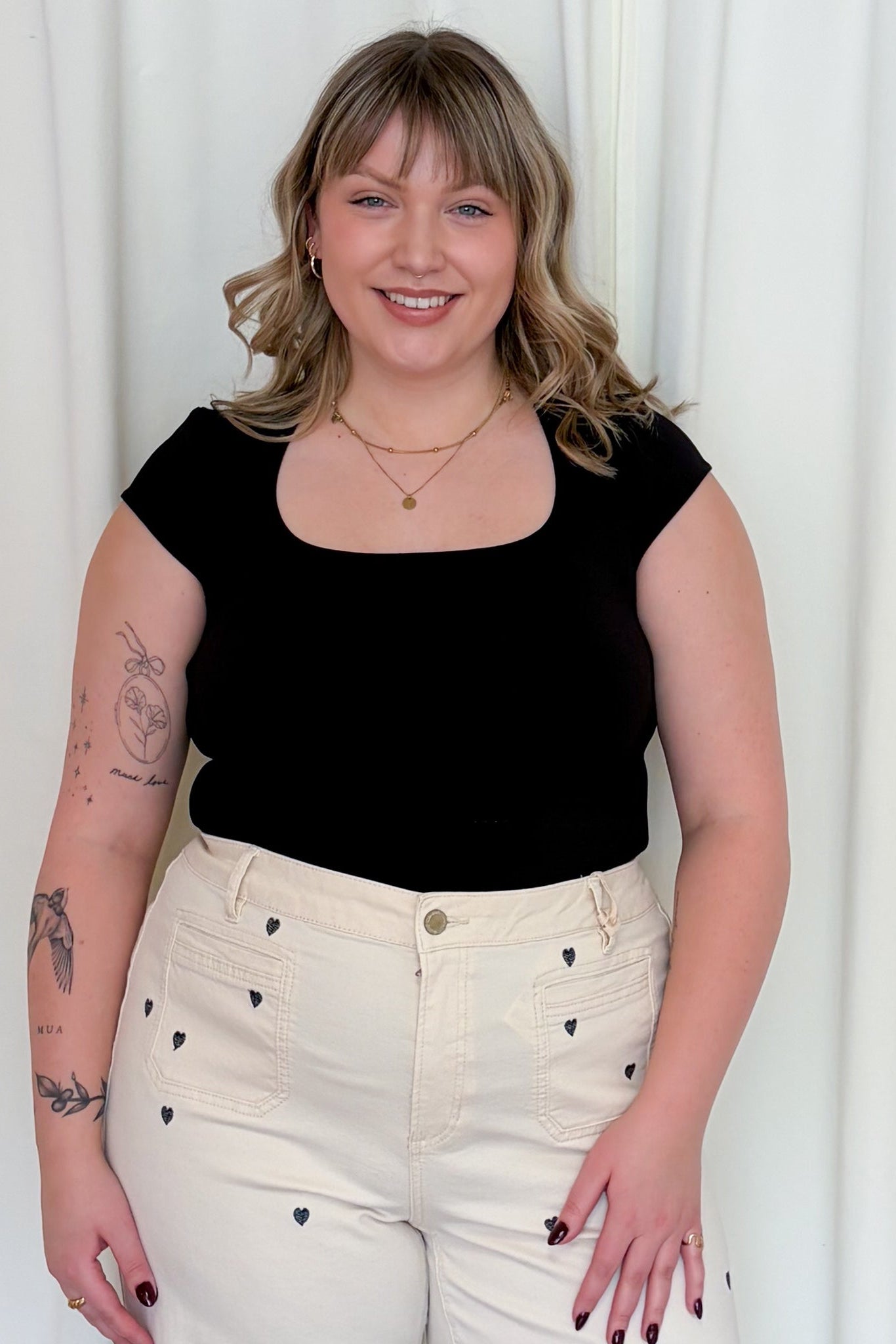 - Square neckline